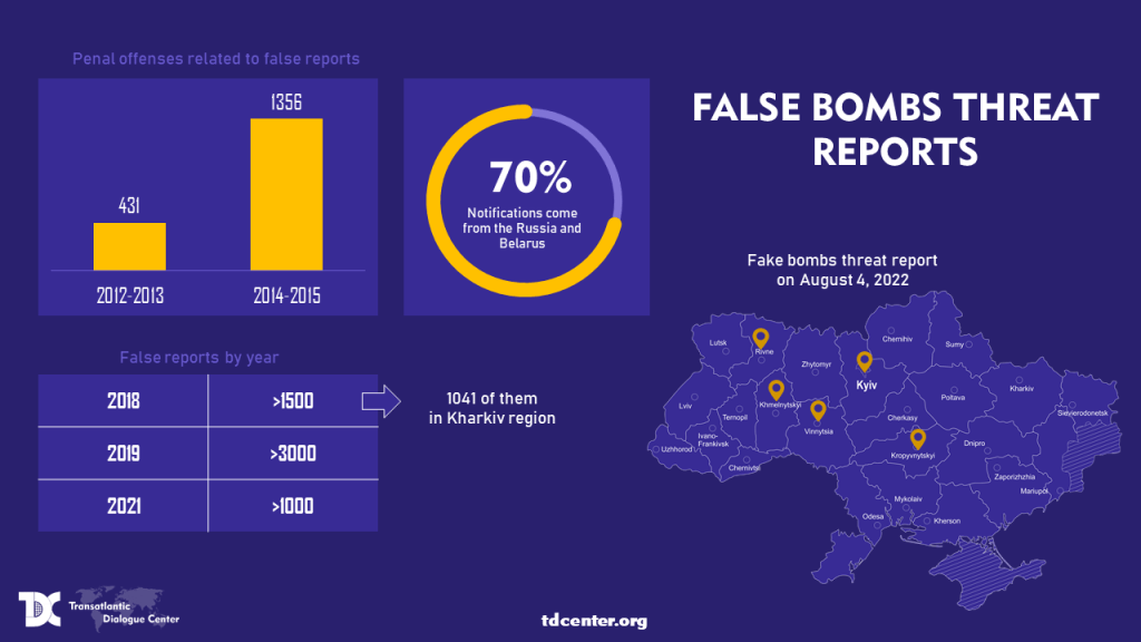Comparison: frequency of false bomb threat reports in Ukraine